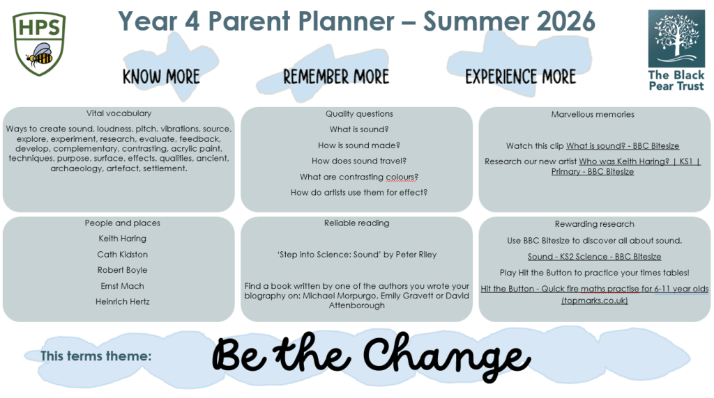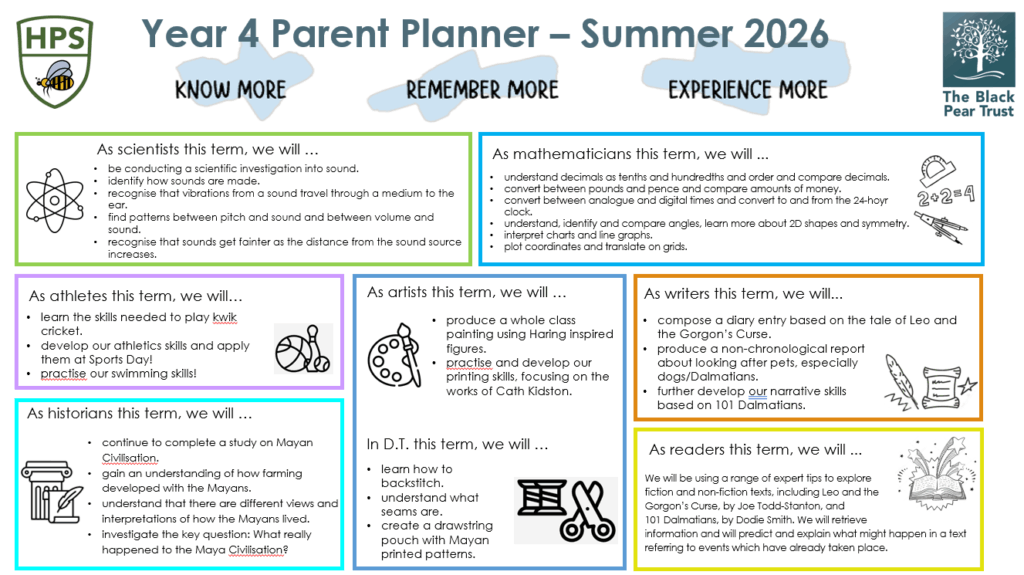 Here is our next parent planner for the autumn term.