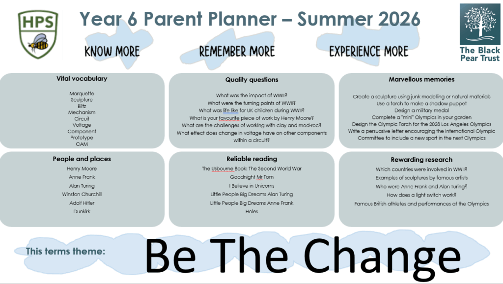 I hope that you all had the best summer are well rested and ready for the last of your primary years! Mr Ryan is the class teacher (the photo above is not of me before you ask!). Mrs Bradley teaches Forest School and also provides cover teaching some afternoons, as well as being a fantastic Classroom Support Professional (CSP). Mrs Summerton is also a brilliant CSP, providing academic support as well as emotional support for pupils in our class and across the school. Finally, Mr Cuff is our final helpful CSP, supporting pupils in the class as well as providing expert coaching in PE lessons.