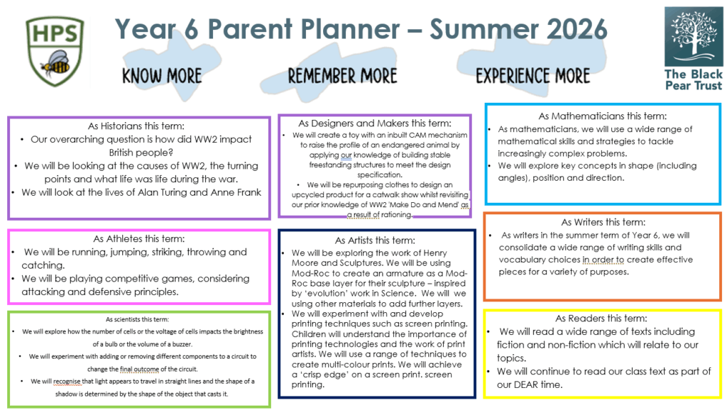 Please see the Parent Planner below for additional information on our topics for the summer term.